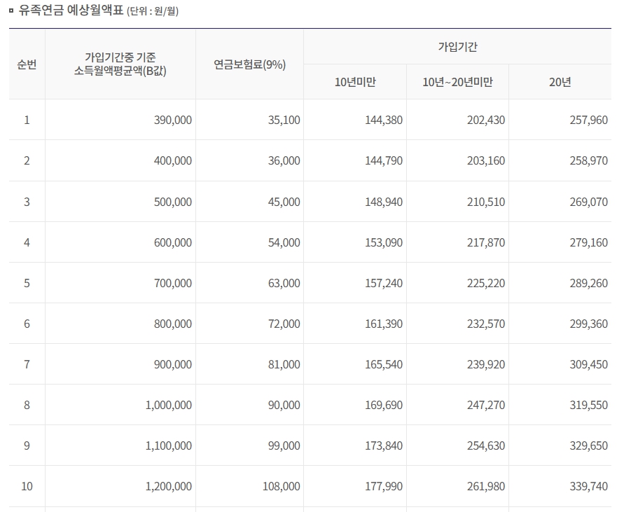 연금액은 고인의 가입기간, 보험료 납부액, 유족 수에 따라 달라집니다.