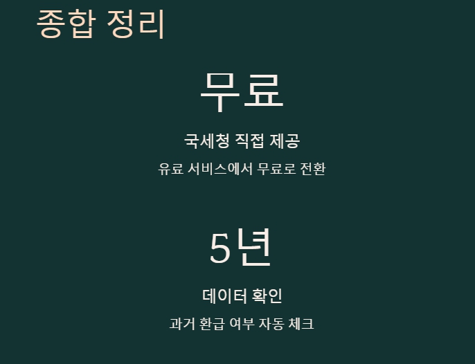 기존에 민간에서 유료로 제공되던 서비스를 이제 국세청이 직접 무료로 운영하기 시작했기 때문이에요!